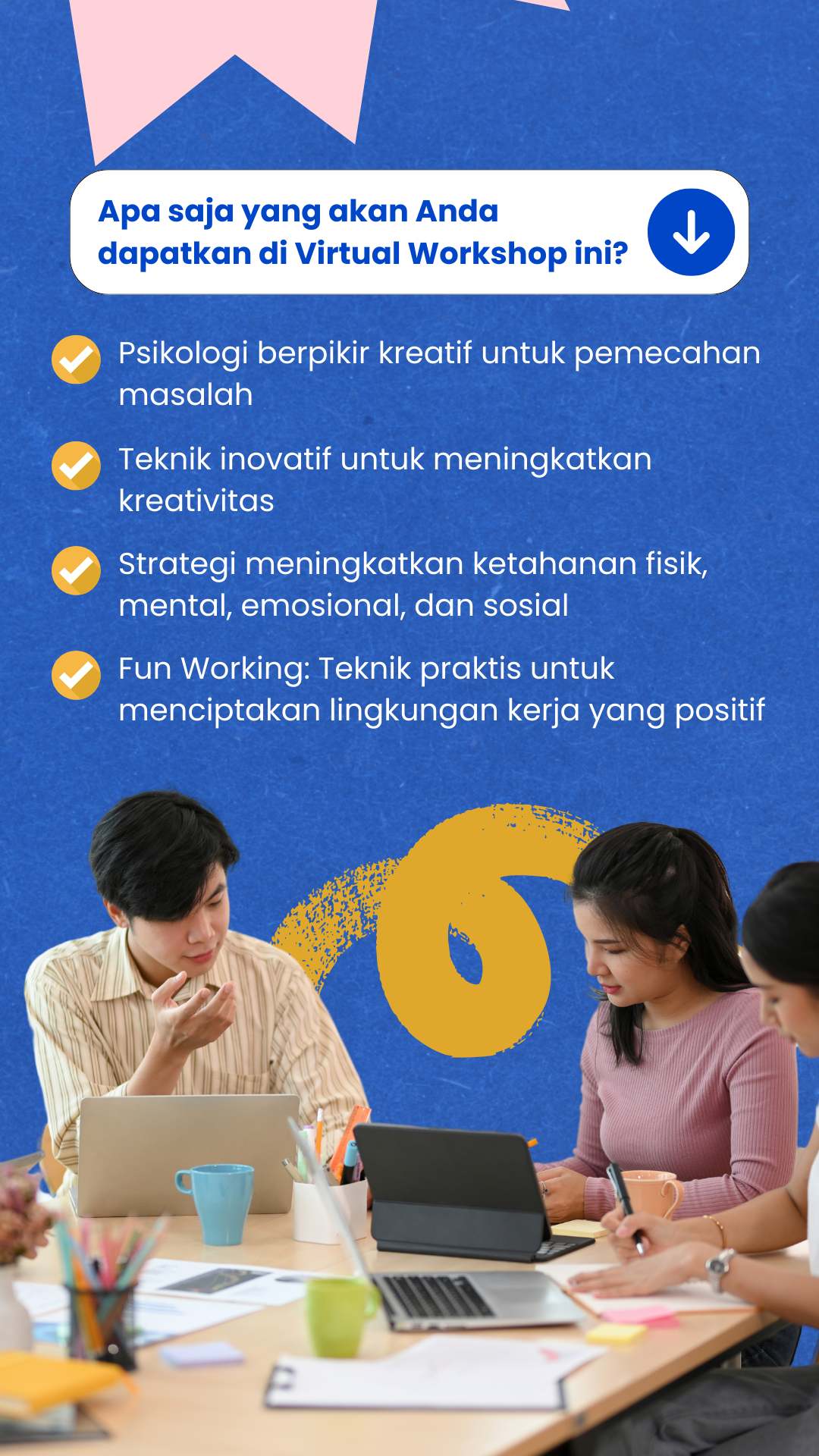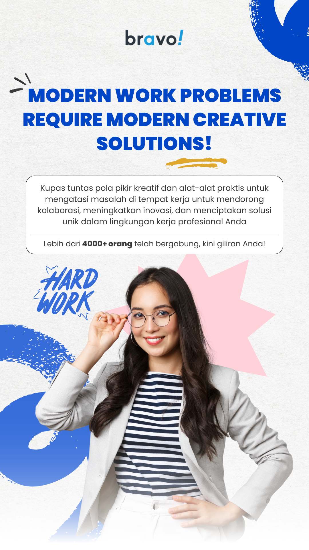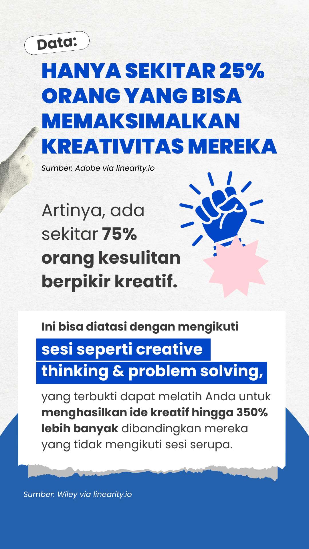 Kupas tuntas pola pikir kreatif dan alat-alat praktis untuk mengatasi masalah di tempat kerja untuk mendorong kolaborasi, meningkatkan inovasi, dan menciptakan solusi unik dalam lingkungan kerja profesional Anda